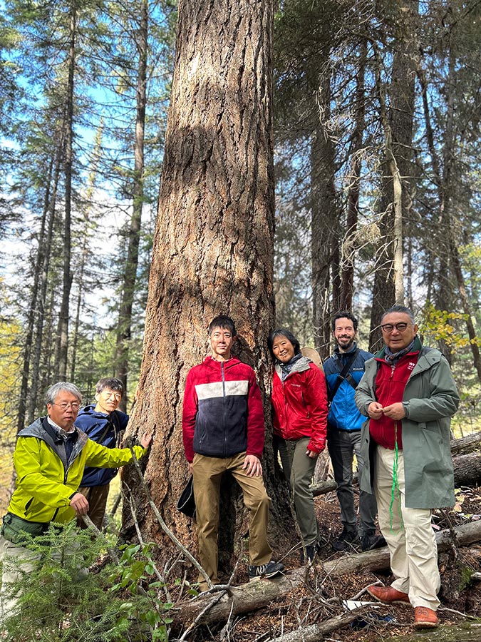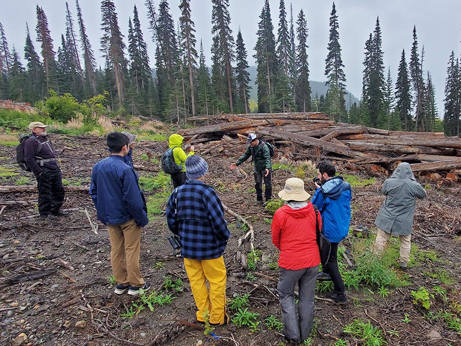 In September of 2024 we hosted a delegation from Japan that included Global Environmental Forum and Mighty Earth Japan, a journalist from a major Japanese newspaper, a forester, and a photographer. About 75% of the wood pellets produced in BC are burned to produce electricity in Japan and the delegation wanted to see for themselves where the raw material is coming from. Among other stops, we showed them an old growth deferral cutblock where 30% of the trees ended up at the Drax pellet mill in Burns Lake.
